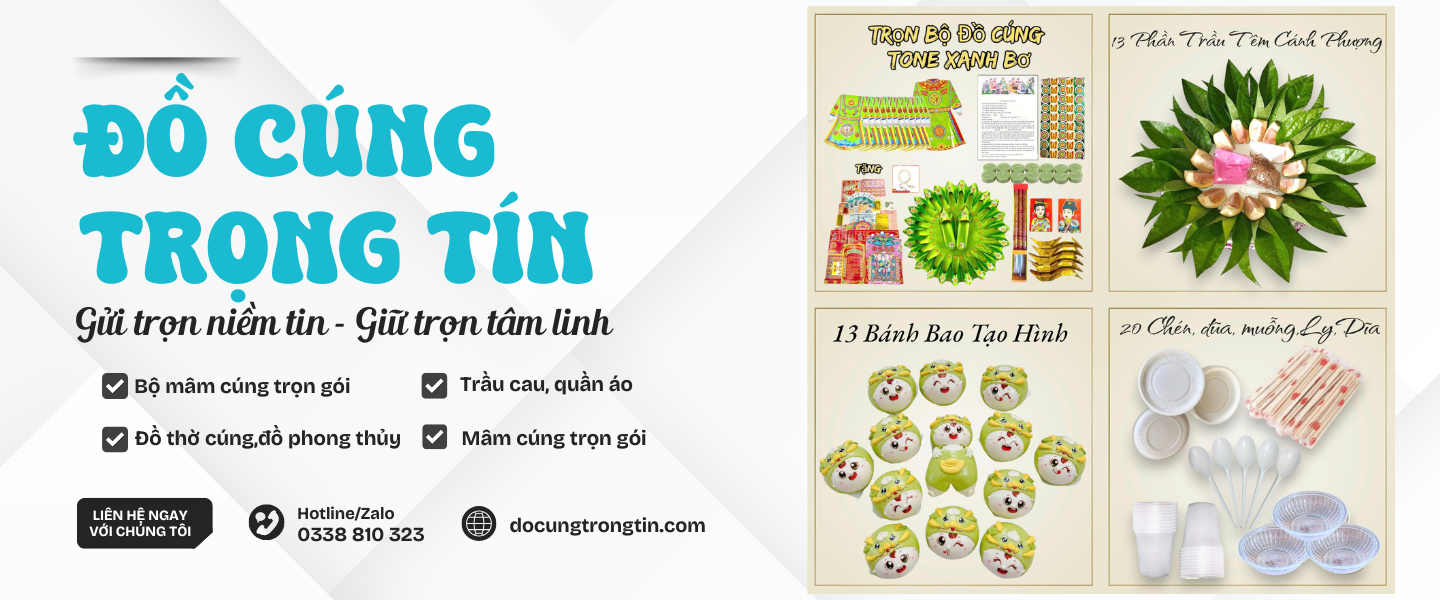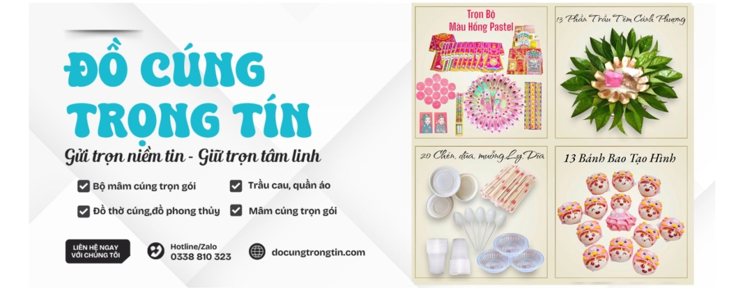 Tại khu vực Thủ Đức – TP.HCM, cái tên Đồ Cúng Trọng Tín đã trở thành địa chỉ đáng tin cậy cho hàng ngàn hộ gia đình, doanh nghiệp khi cần chuẩn bị mâm cúng đầy đủ, trang trọng và đúng nghi lễ. Với hơn 10 năm kinh nghiệm trong nghề, Trọng Tín hiểu rằng: cúng không chỉ là nghi lễ, mà còn là sự thành tâm, kính trọng đối với ông bà tổ tiên, thần linh và các đấng thiêng liêng.