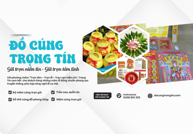 Đồ Cúng Trọng Tín là một trong những đơn vị chuyên cung cấp dịch vụ chuẩn bị mâm cúng trọn gói uy tín, chuyên nghiệp tại Việt Nam. Với phương châm “Trọn tâm – Trọn lễ – Trọn vẹn niềm tin”, Trọng Tín cam kết mang đến cho khách hàng những mâm lễ đúng chuẩn phong tục truyền thống, đầy đủ lễ vật, bài trí đẹp mắt và phù hợp từng nghi lễ cụ thể.